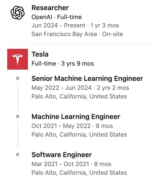 Ethan Knight曾在OpenAI担任实习生,他在特斯拉工作一段时间后,同样加入了Meta。