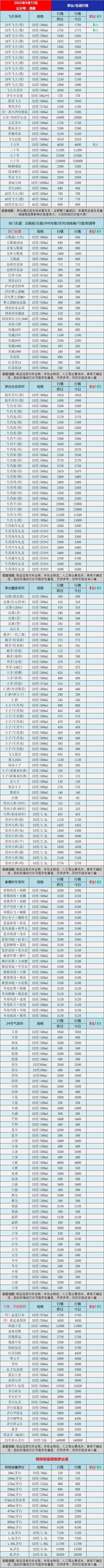 kaiyun今日茅台/名酒价格最新动态更新:飞天系列,2025年飞天原箱、散瓶下跌10元/瓶,茅台十五年下跌30元/瓶,生肖系列等今日搁浅。更多名酒具体行情如下图表: